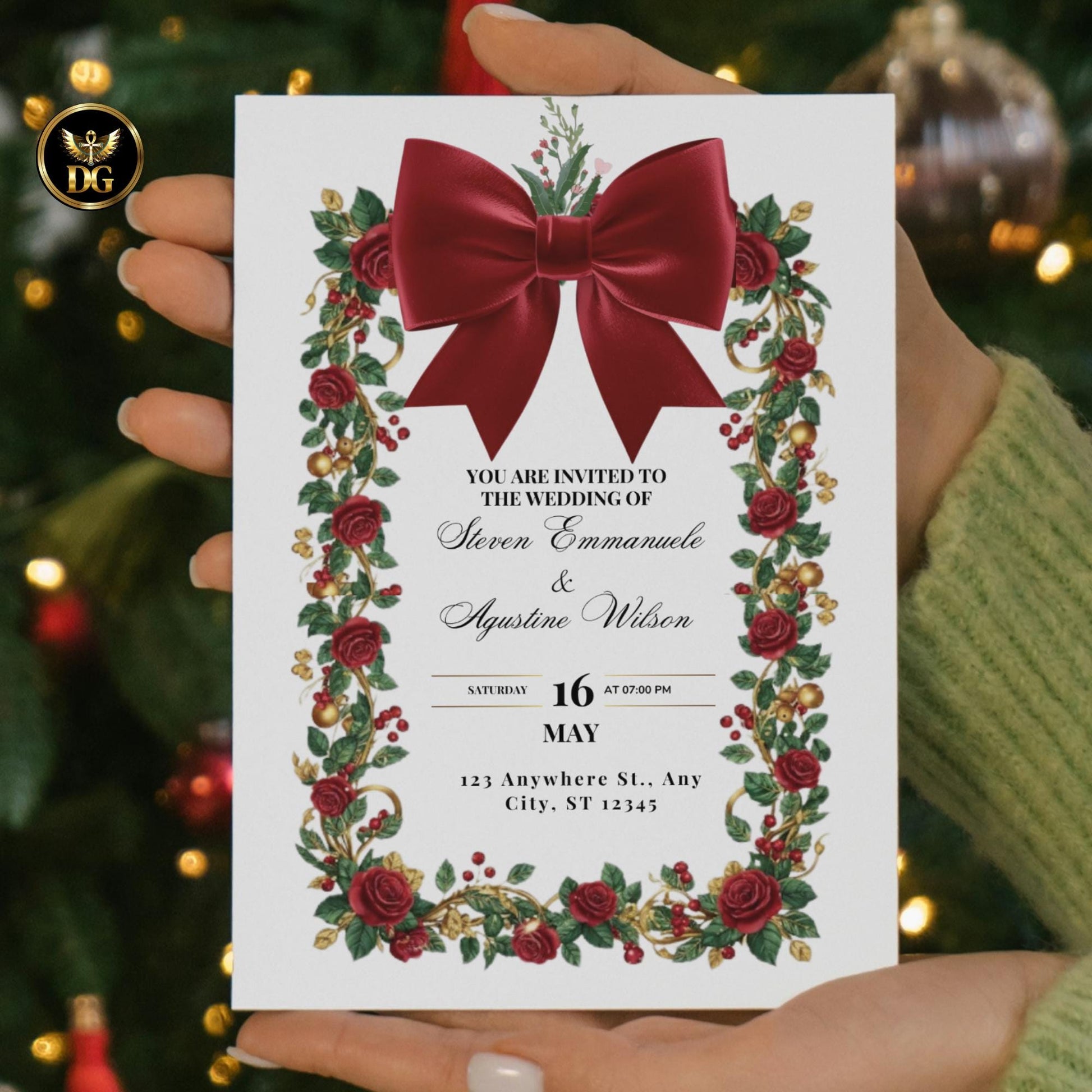β¨ Make your Christmas wedding unforgettable with the Burgundy Velvet & Christmas Berry Invitation Suite β where festive joy meets timeless luxury. β¨