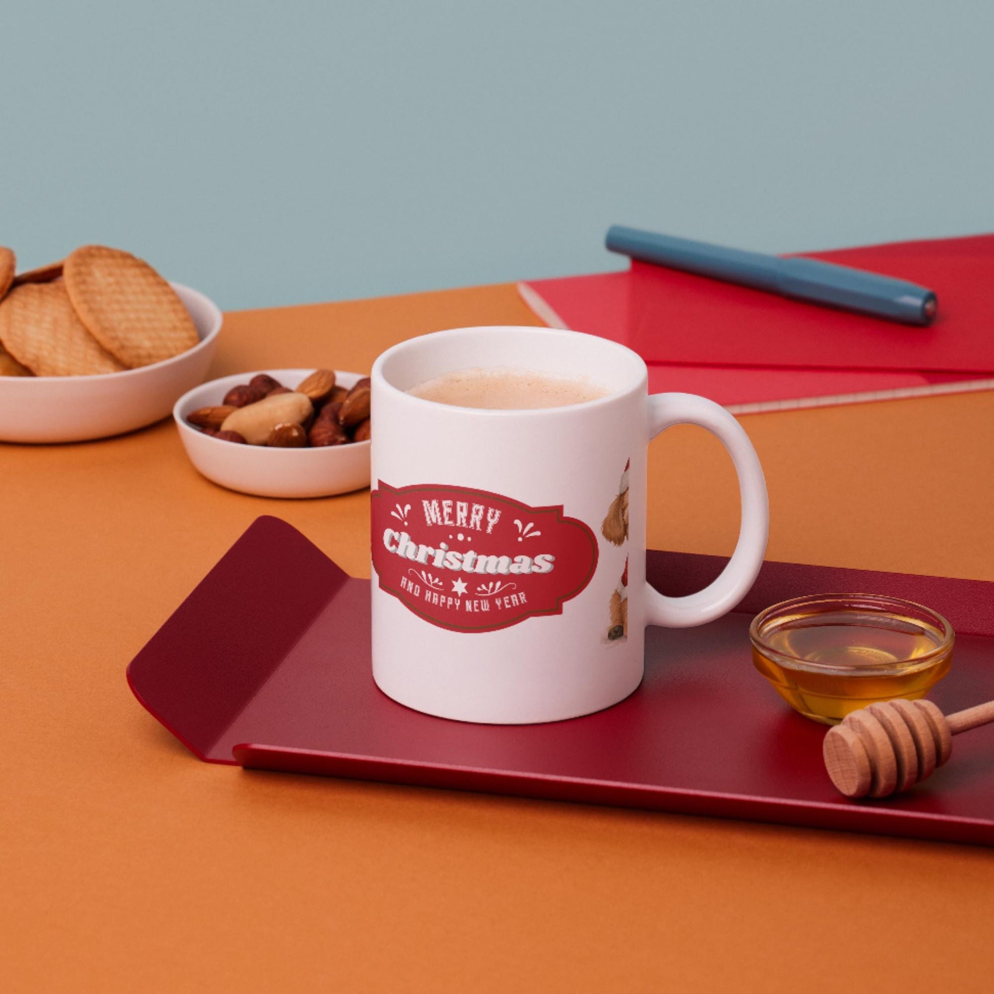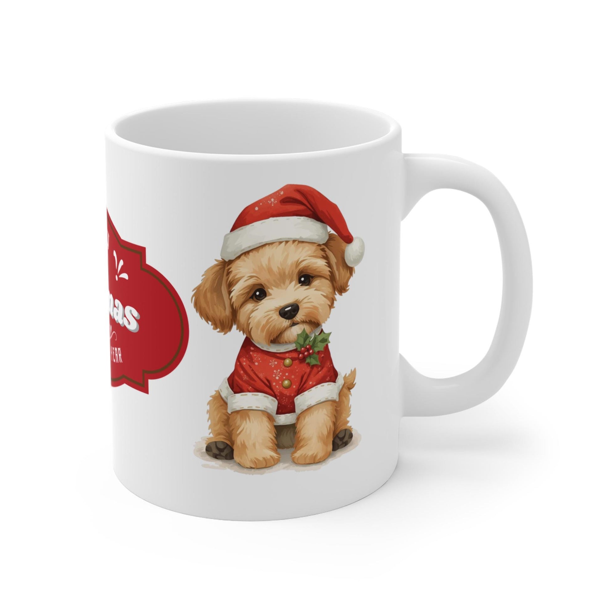 A cozy white ceramic mug that brings holiday cheer with a warm, playful spirit. The glossy surface features a cheerful festive badge and an adorable puppy in a Santa hat, creating a soft, nostalgic scene that lights up quiet mornings and late-night cocoa sessions. Hold it by the comfortable C-handle as cinnamon steam rises—this mug feels like a small celebration in your hands, whether on the desk during December workdays or gathered around the table with loved ones. The rounded silhouette and classic white backdrop make the artwork pop while blending seamlessly into everyday routines and holiday displays.