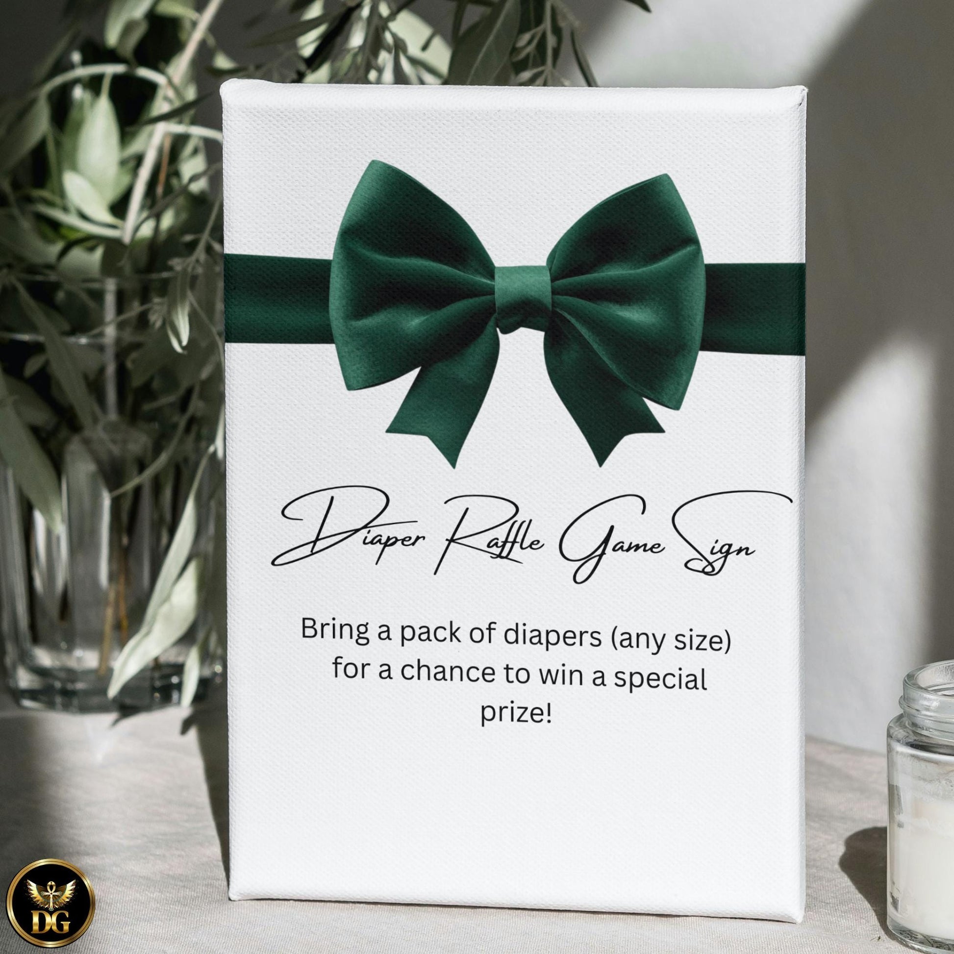Diaper Reveal Sign 8x10 | Baby Shower Diaper Raffle Game | White Background Green Velvet Bow | Printable Baby Shower Game