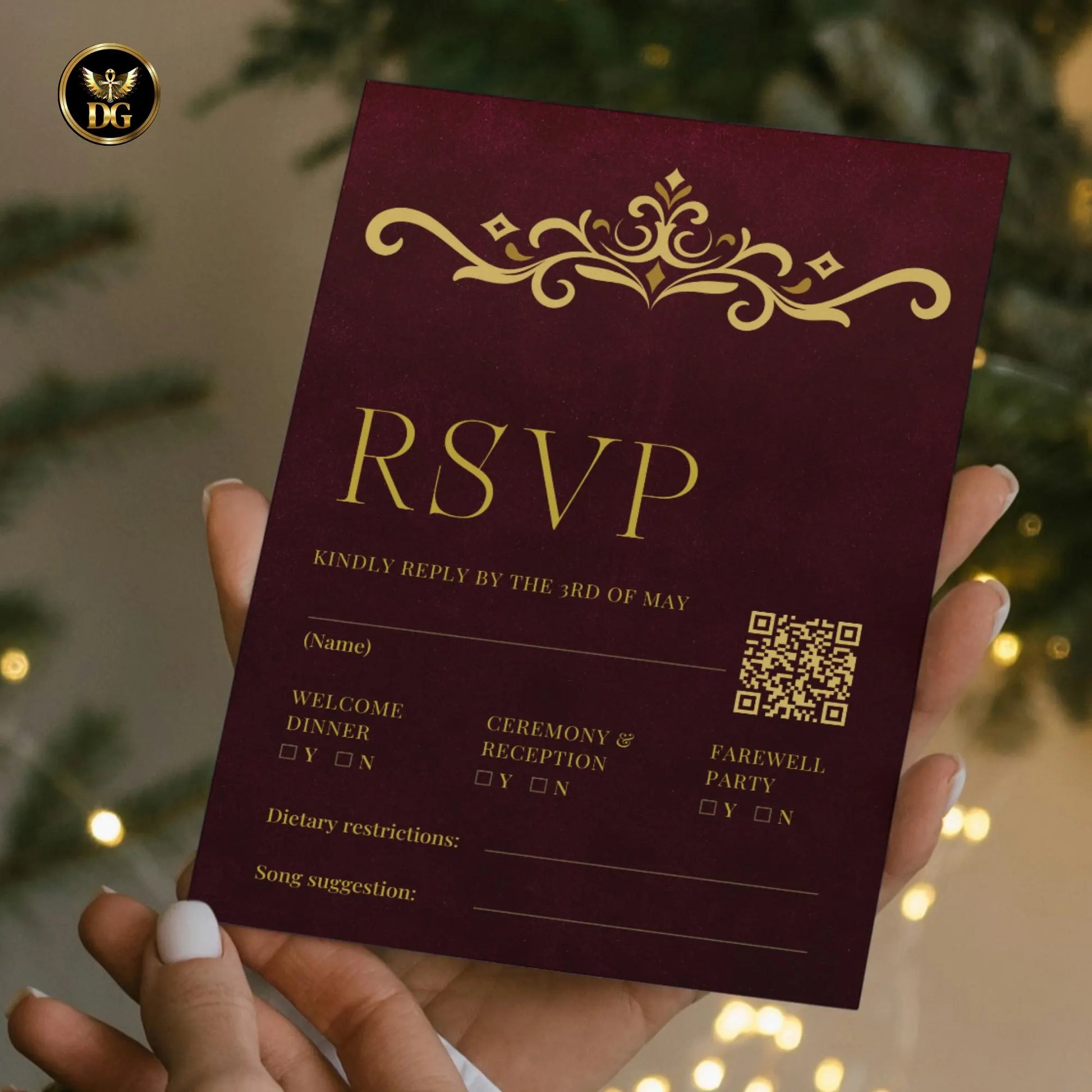 RSVP Card (with QR Code option): 5 x 3.5 in