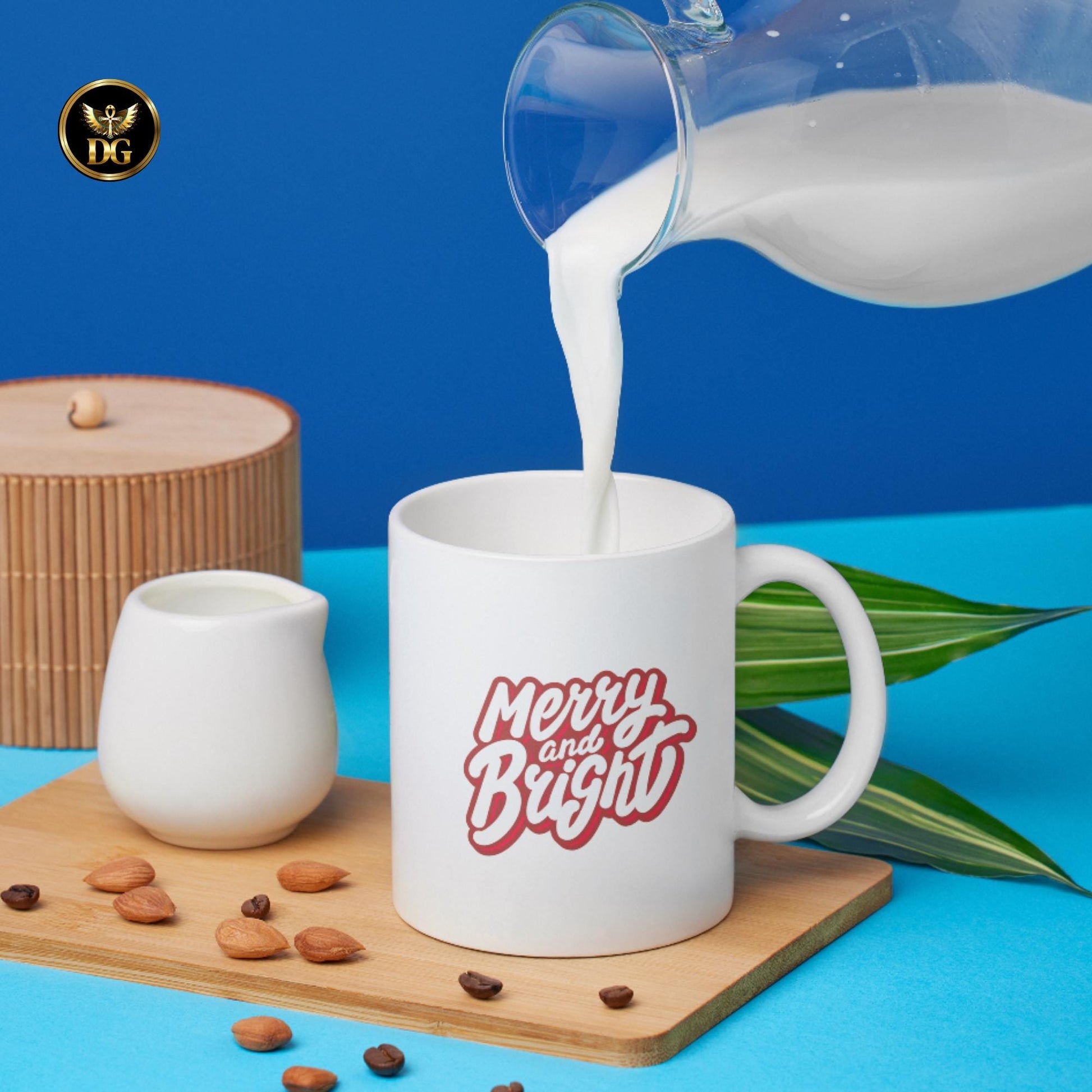 Editable Merry & Bright Christmas Bow Template • Add Any Name • Canva Link • Coquette Red Ribbon Mug Shirt Design