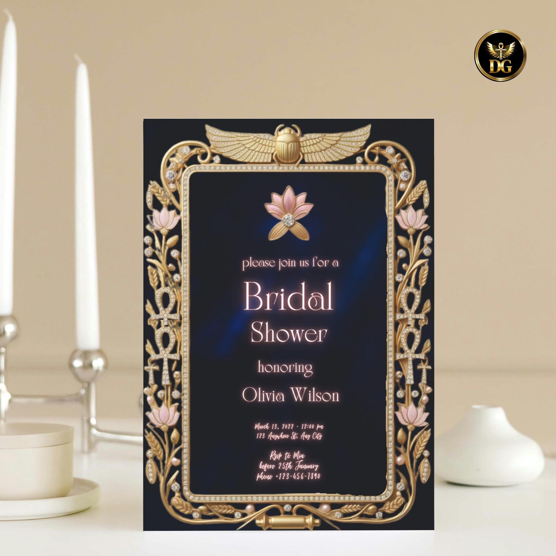 Honor the Pharaohs! Stunning Egyptian-Themed Digital Bridal Shower Invitation