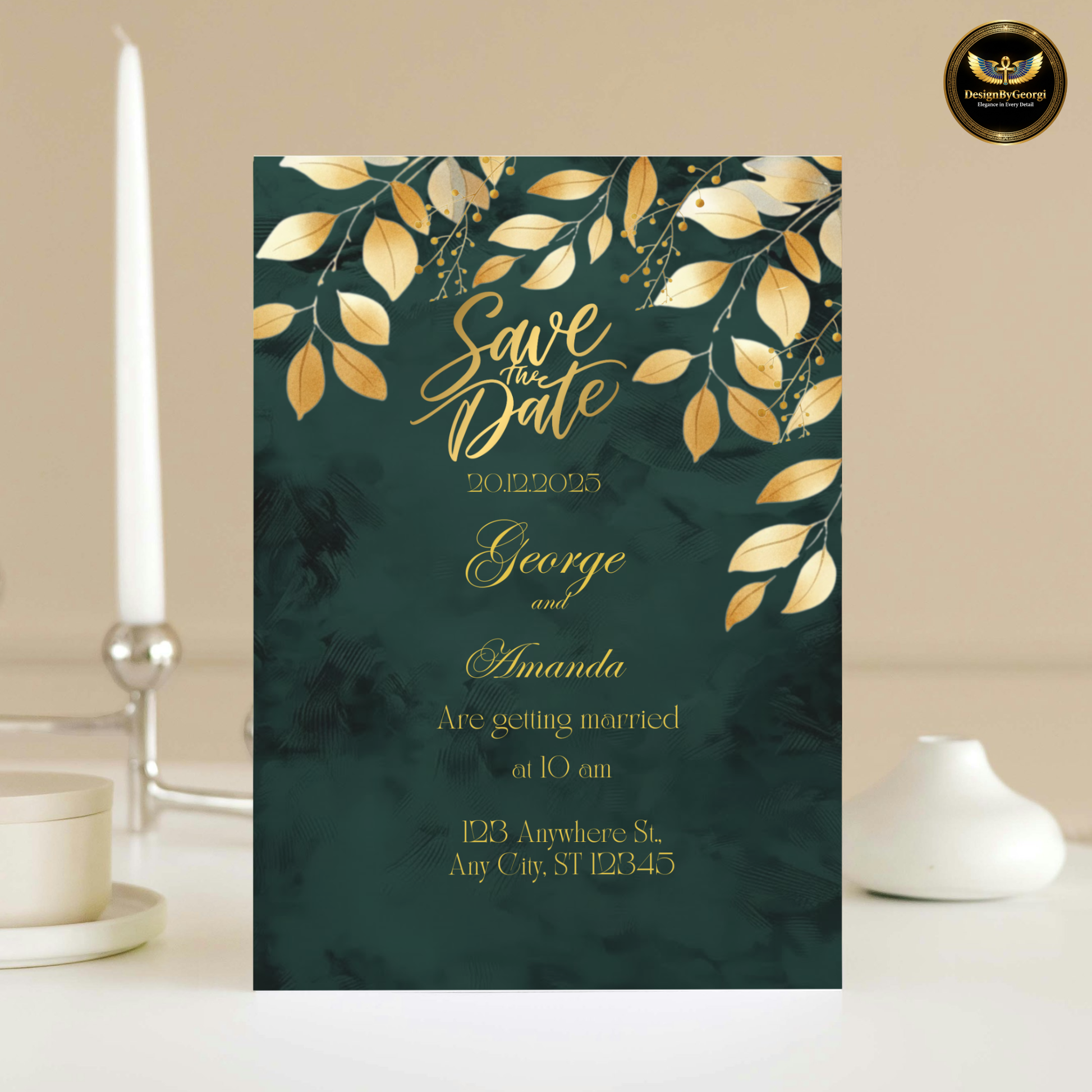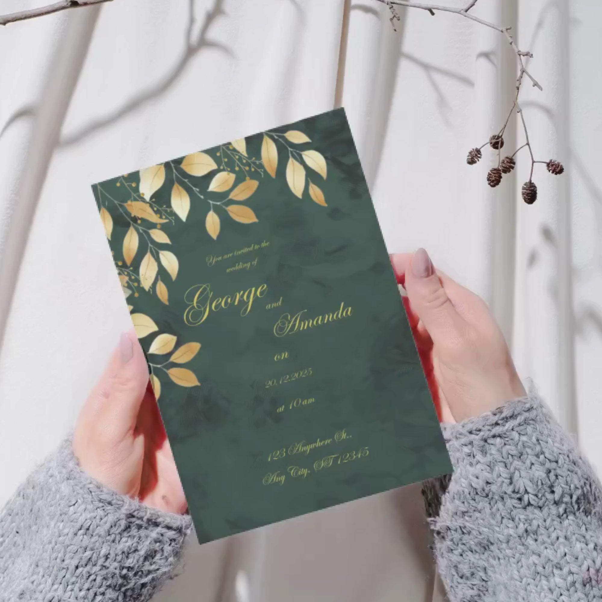 ✨ Emerald Velvet & Golden Leaf Wedding Invitation Suite