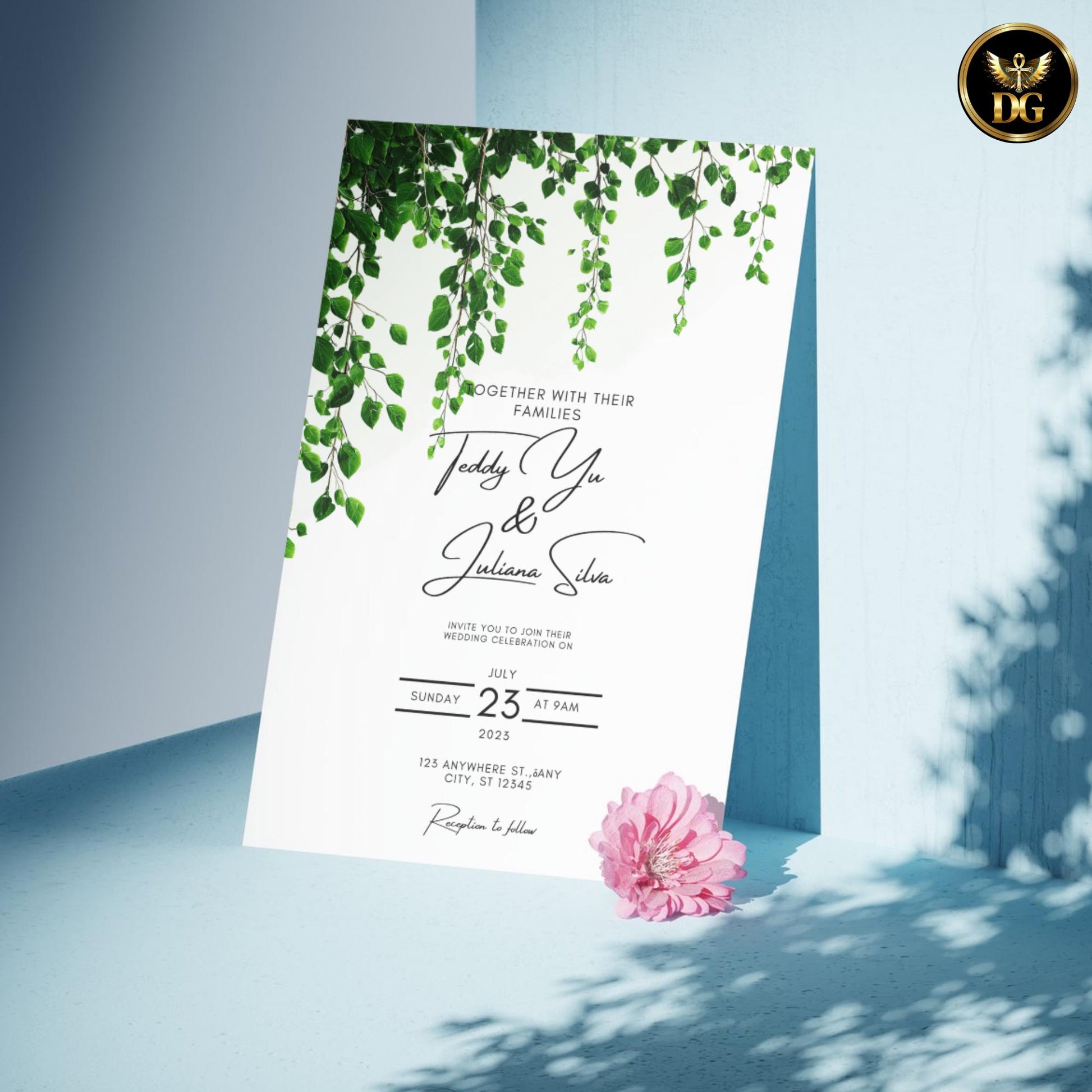 Customize all text: couple names, date, time, venue, wording, etc. You can even adjust the shade of green if desired.