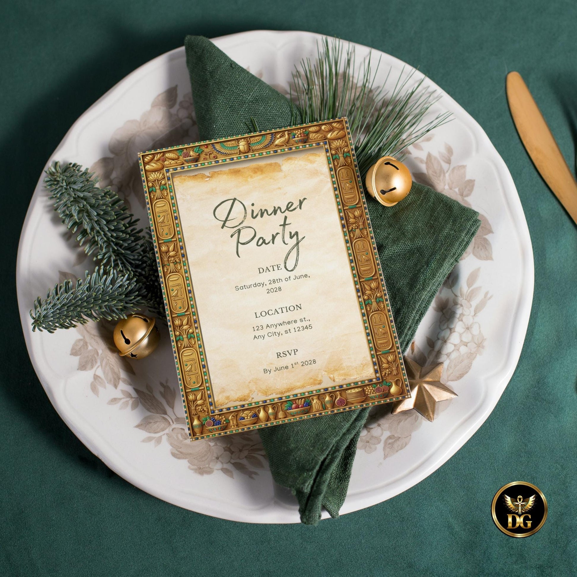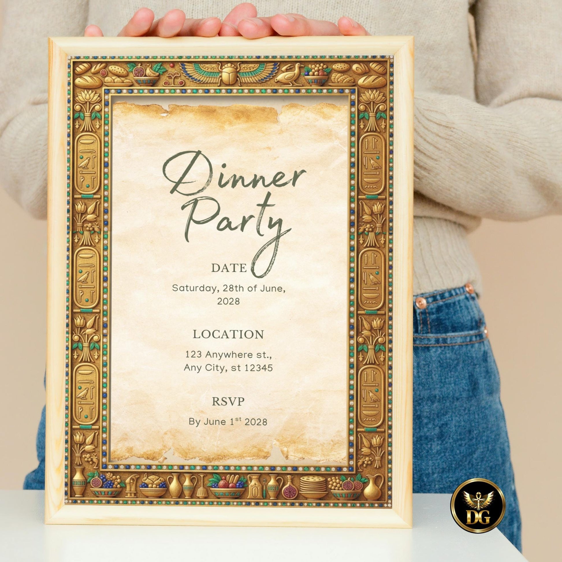 Feast Like a Pharaoh! Egyptian Dinner Party Invitation Template | Ancient Gold Hieroglyphic Design | Printable & Digital