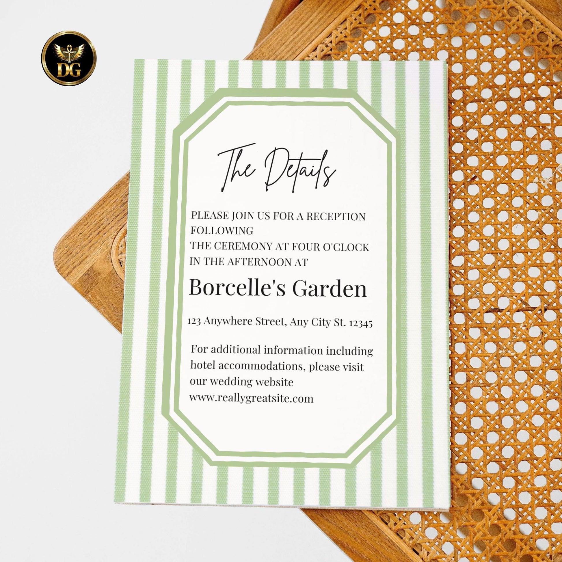 Green Striped Wedding Invitation Suite, Editable Canva Template, Classic Elegant Design, Printable Bundle with RSVP, Menu, Thank You Cards