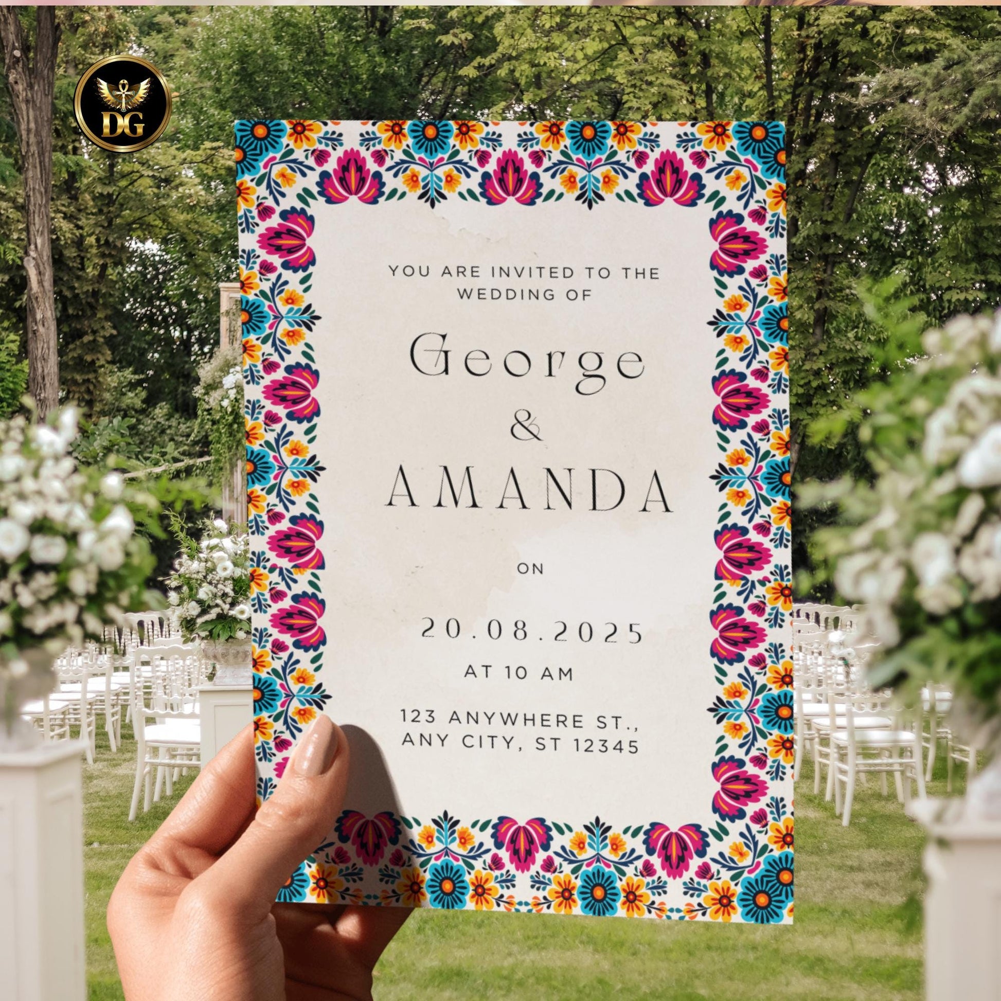 ✨ Mexican Style Beige & Gold Wedding Invitation Set – Elegant Boho Printable Wedding Suite (6 Cards) ✨