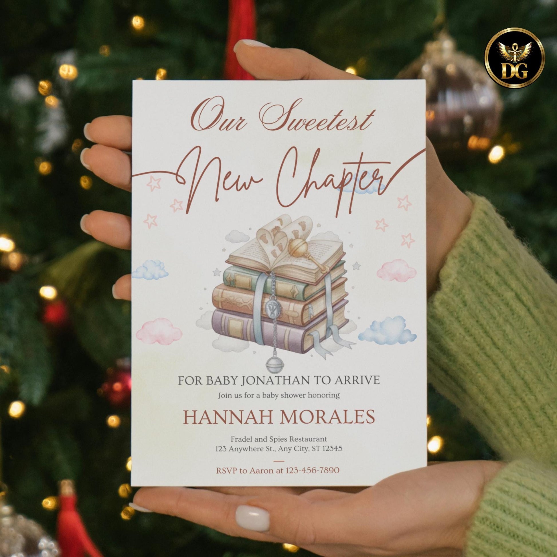 Our Sweetest New Chapter Baby Shower Invitation, Storybook Gender Neutral Shower, Printable & Digital Set