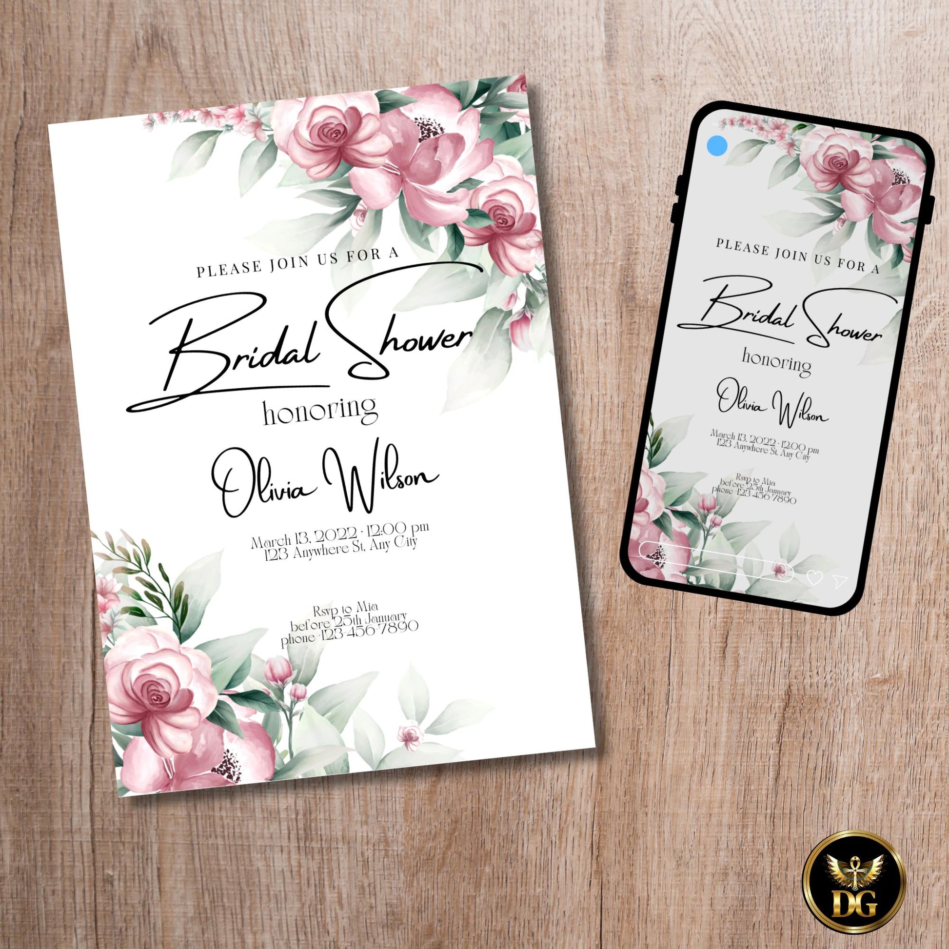 This listing includes the Pink Floral Bridal Shower Invitation in two formats: