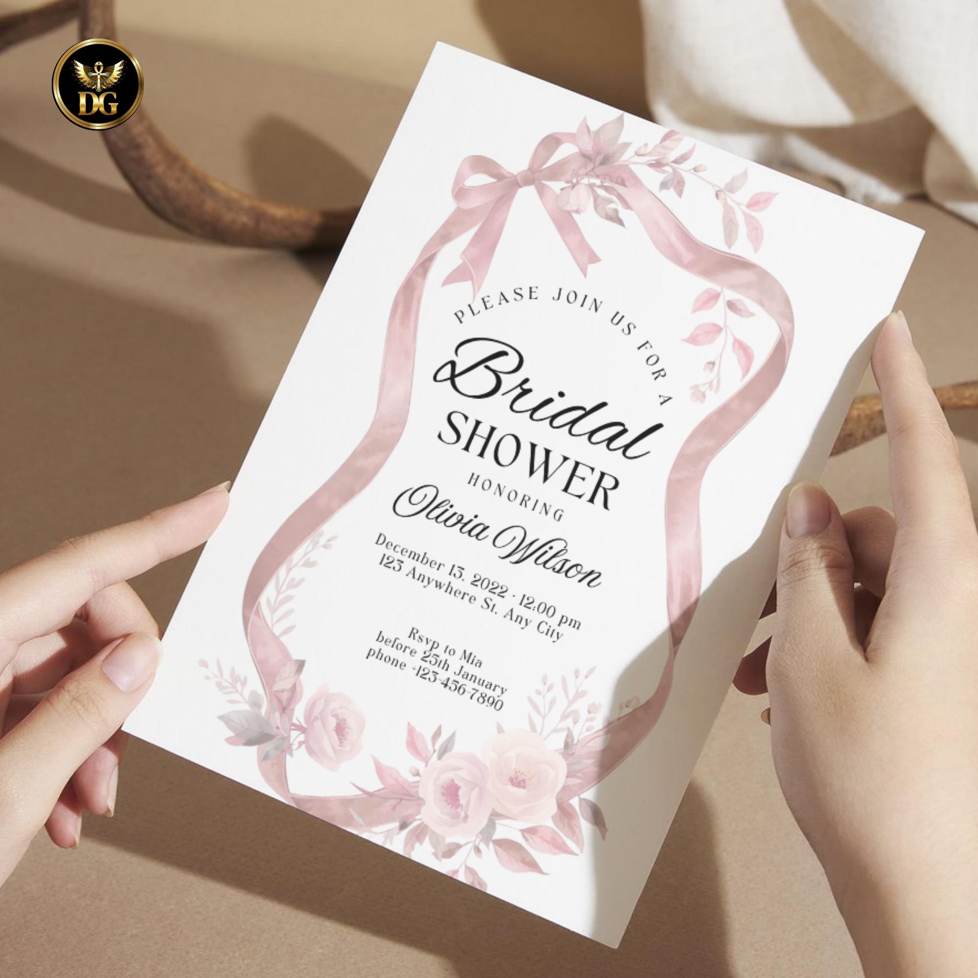 Create a beautiful, cohesive bridal suite that captures love and sophistication β download this Pink Ribbon Bridal Shower Invitation Set today! π