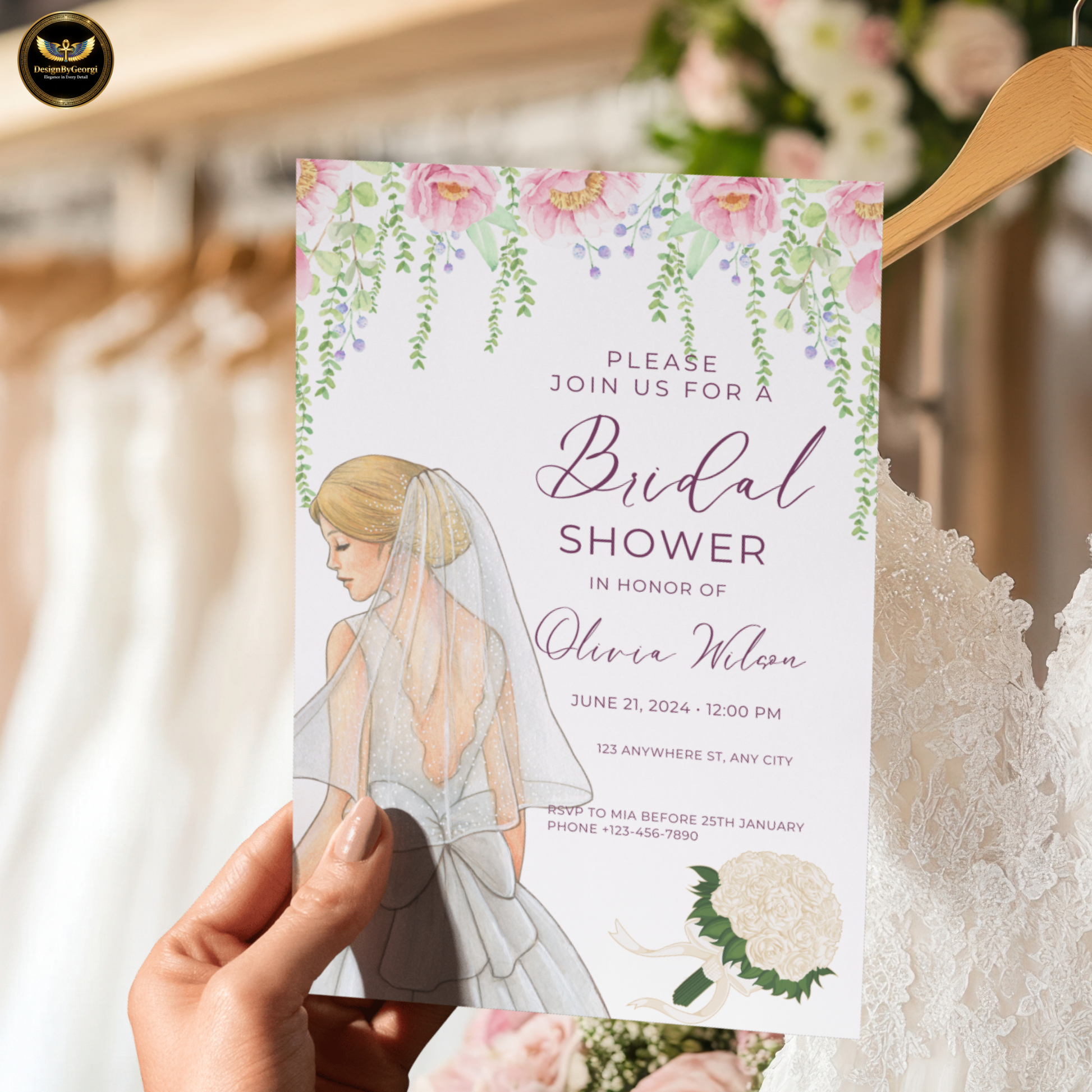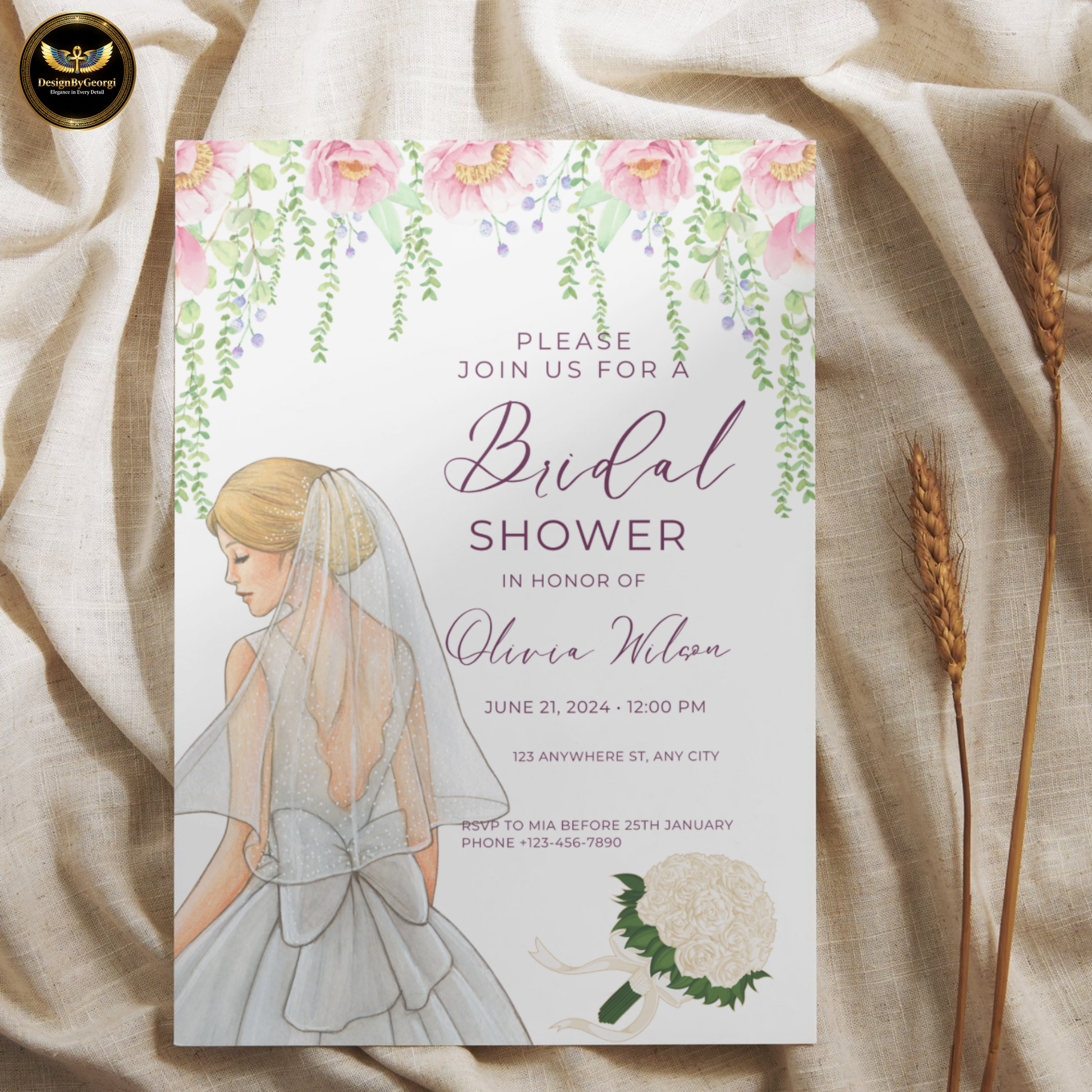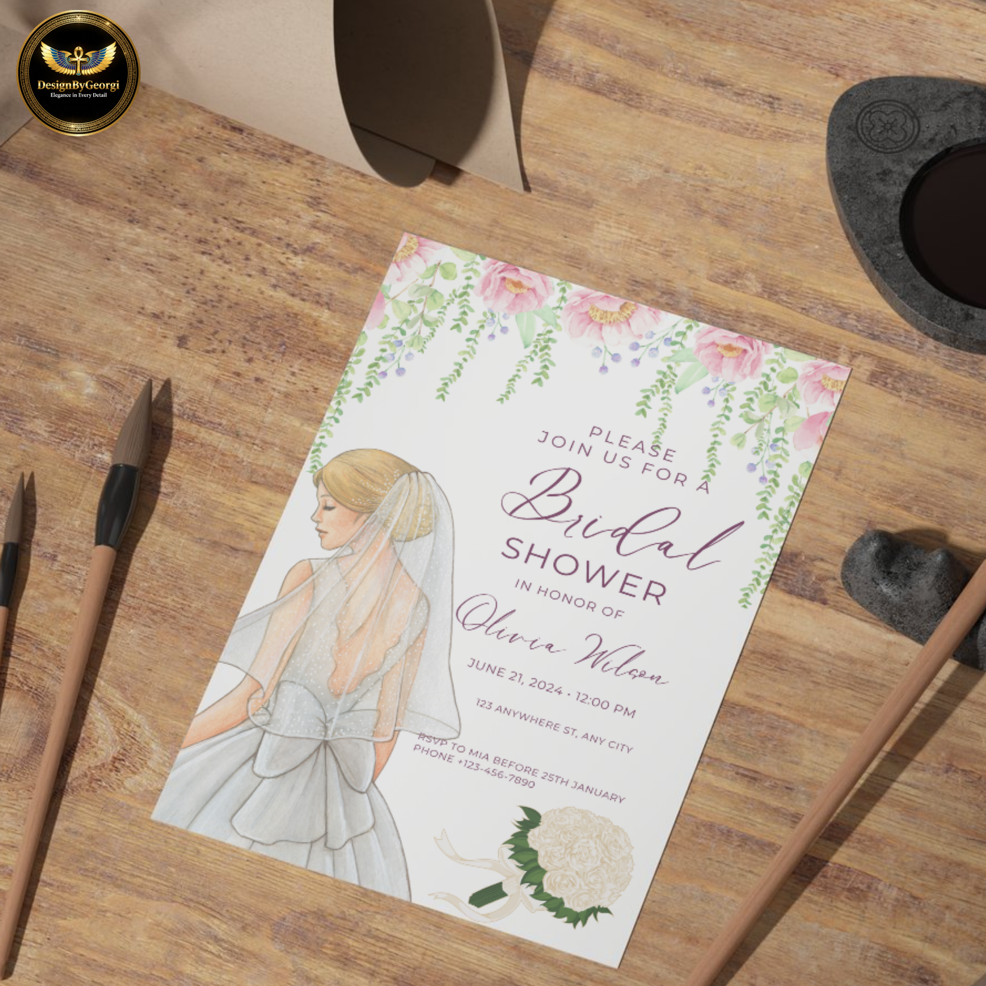 This design is light, feminine, and dreamy, making it perfect for romantic bridal showers, elegant daytime celebrations, garden-inspired events, or soft modern bridal themes. The hand-painted watercolor style adds an artistic, graceful feel while keeping the layout fresh and uncluttered.