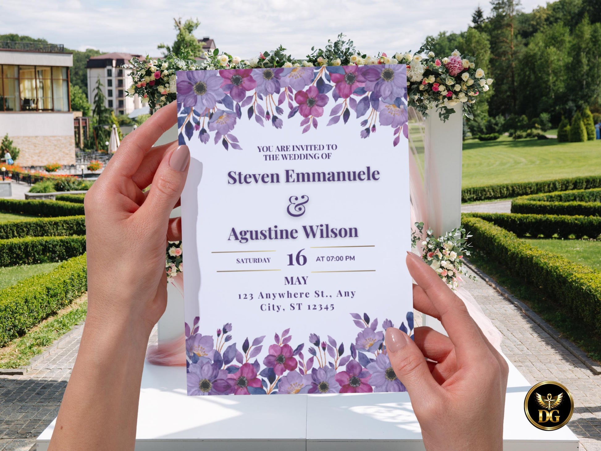 Purple Floral Wedding Invitation Suite Editable Canva Template Digital Download Printable Invitation Template Editable Canva InstantDownload
