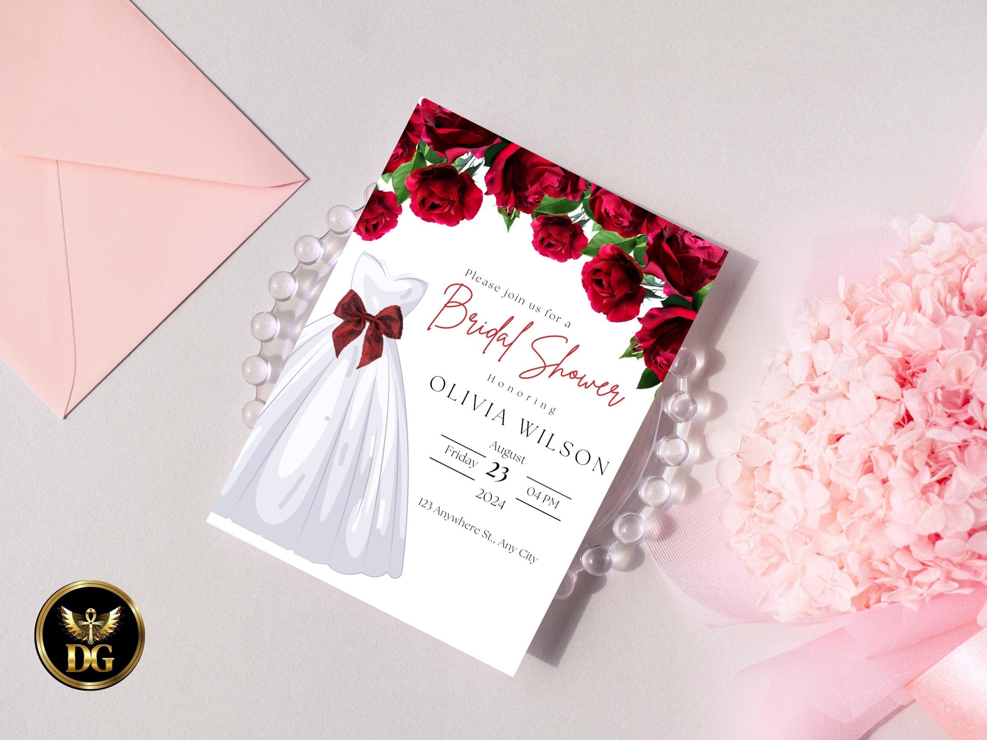 Red Roses Bridal Shower Invitation: Wedding Dress, Editable Template (Digital Download) Printable Invitation Template Editable Canva Instant