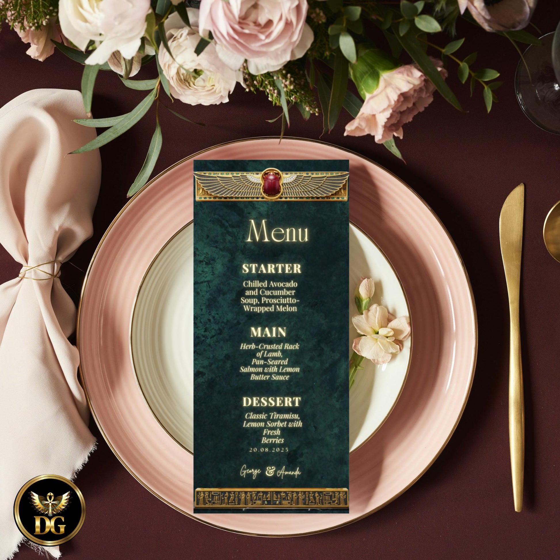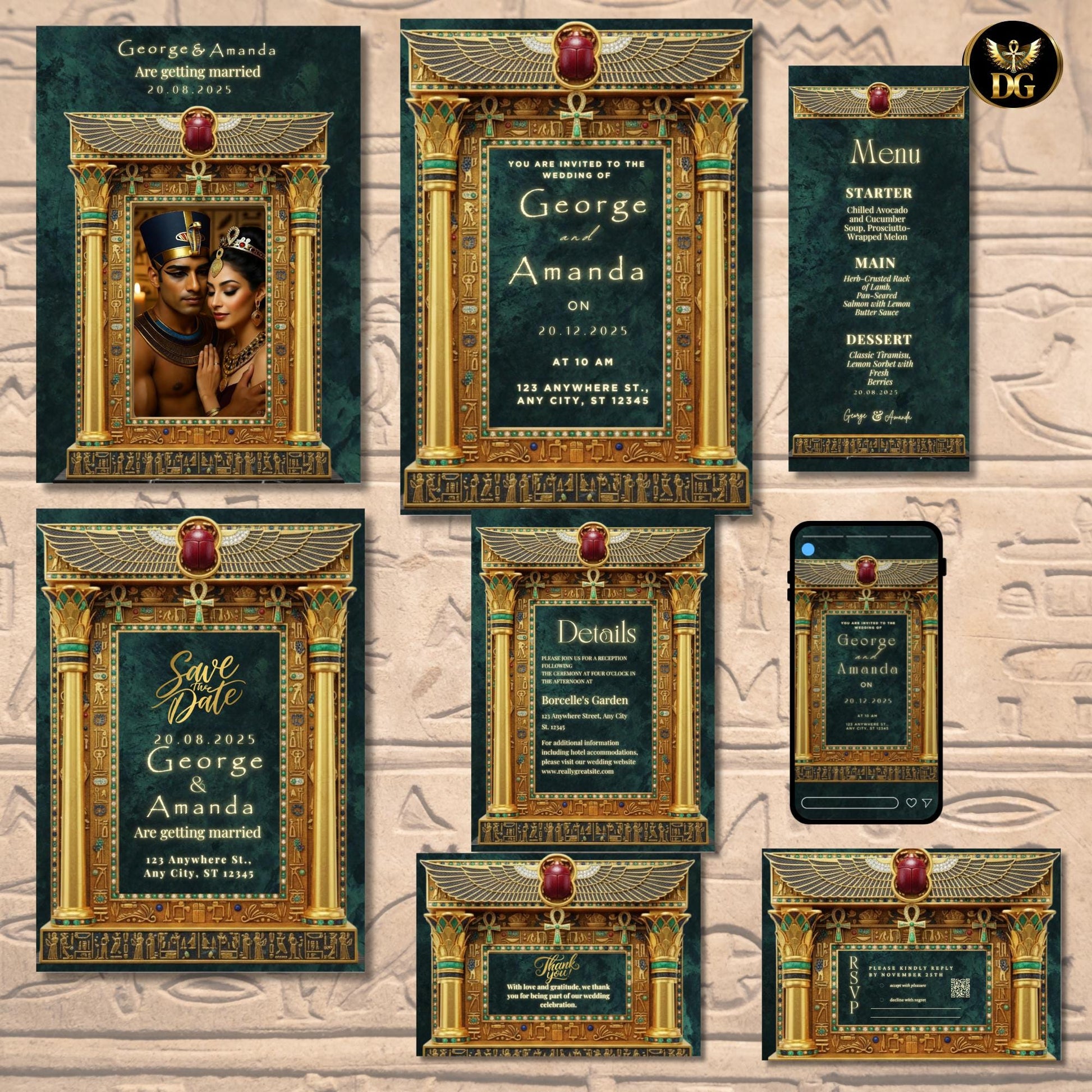 The Emerald Scarab Dynasty is a luxurious digital wedding invitation collection designed for couples who desire power, elegance, and timeless symbolism woven into every detail.