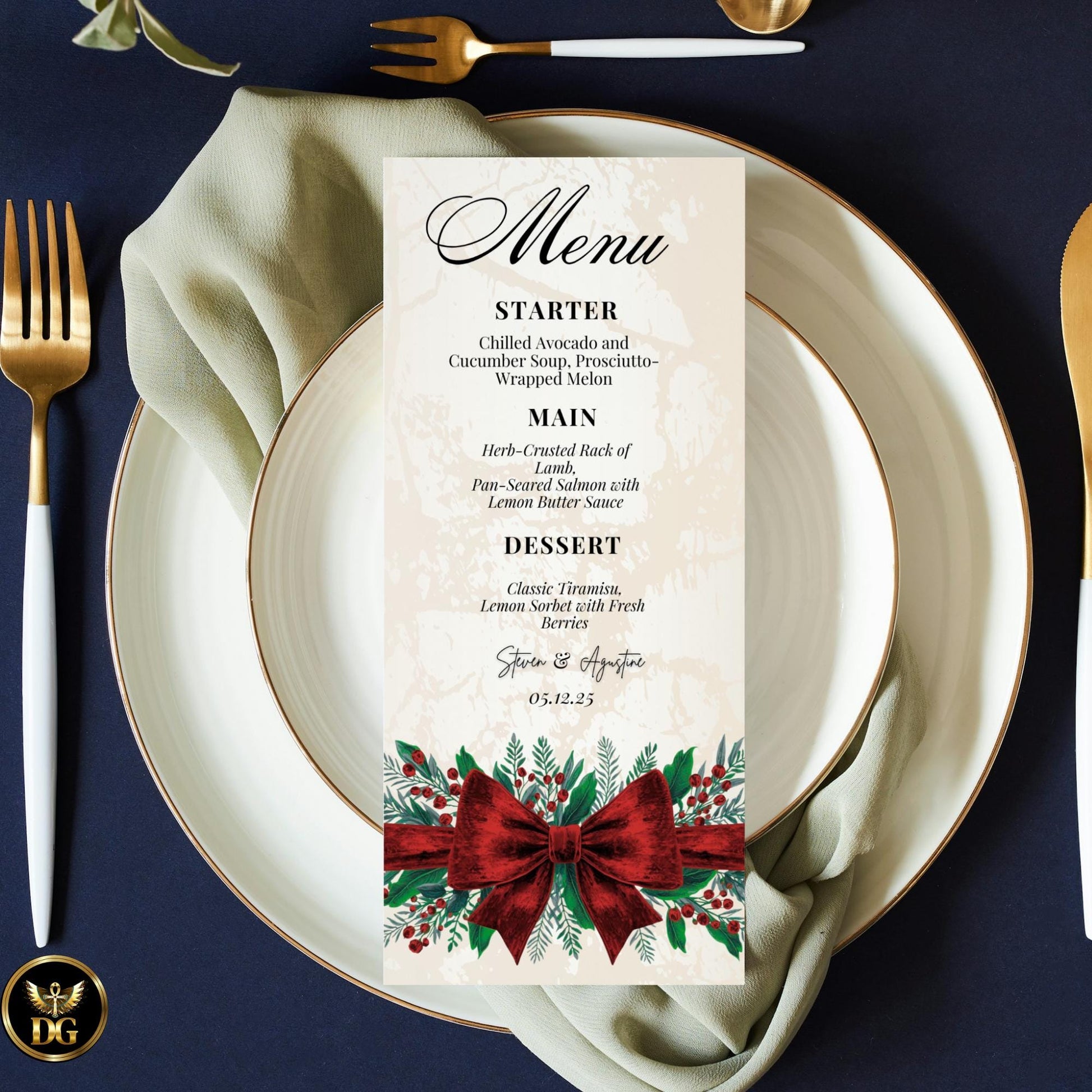 BridalShower, ChristmasInvite, VelvetBow, CreamGold, RedBerries, Evergreen, WinterWedding, CanvaTemplate, LuxuryInvite, HolidayShower, FestiveInvite, PrintableInvite, DigitalInvite