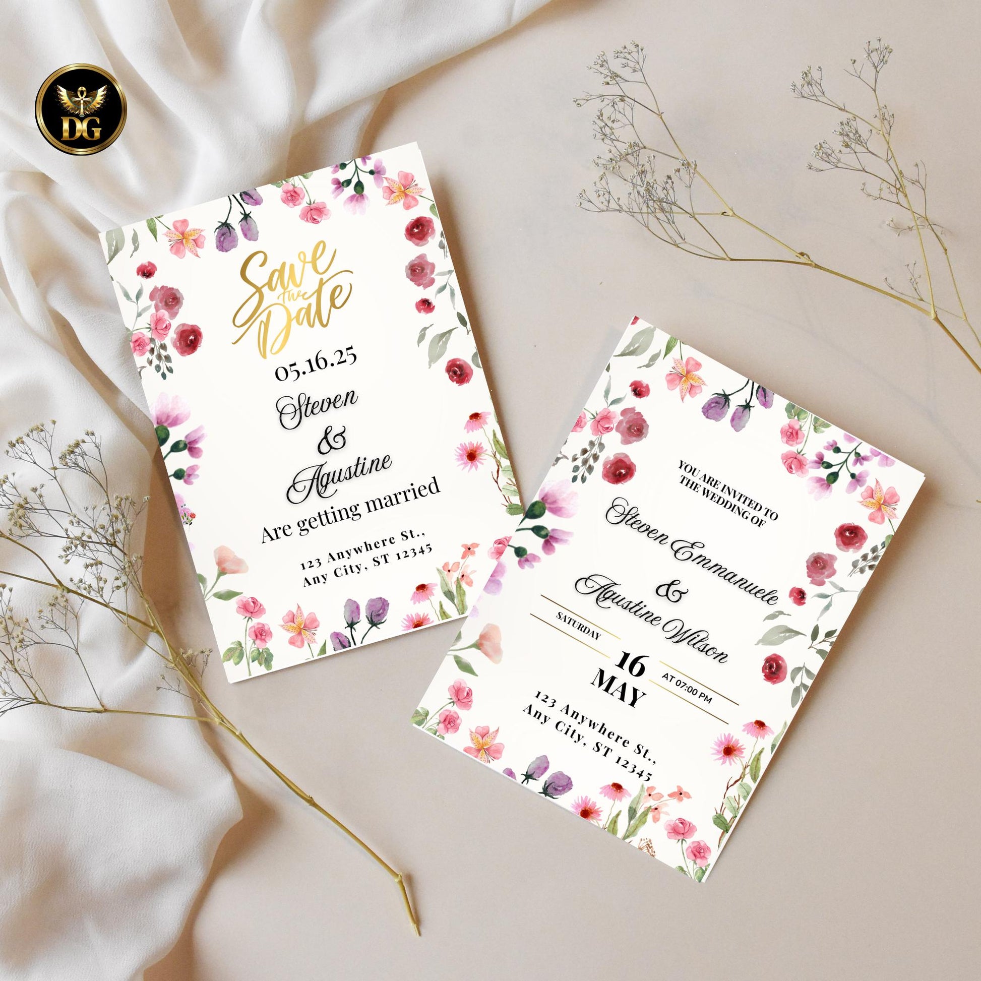 This wedding invitation set is ideal for romantic weddings, garden weddings, boho chic, or elegant receptions.