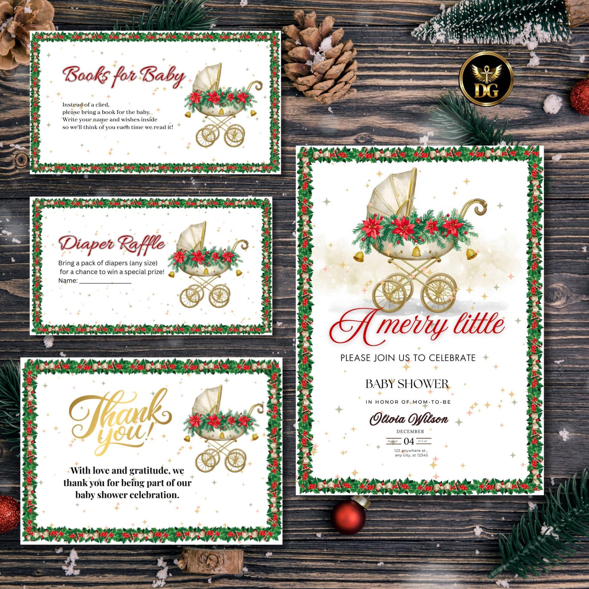 Christmas Baby Shower Invitation, Merry Little Baby Shower Invitation, Winter Baby Shower Invite, Winter Wonderland Baby Shower, For Holiday