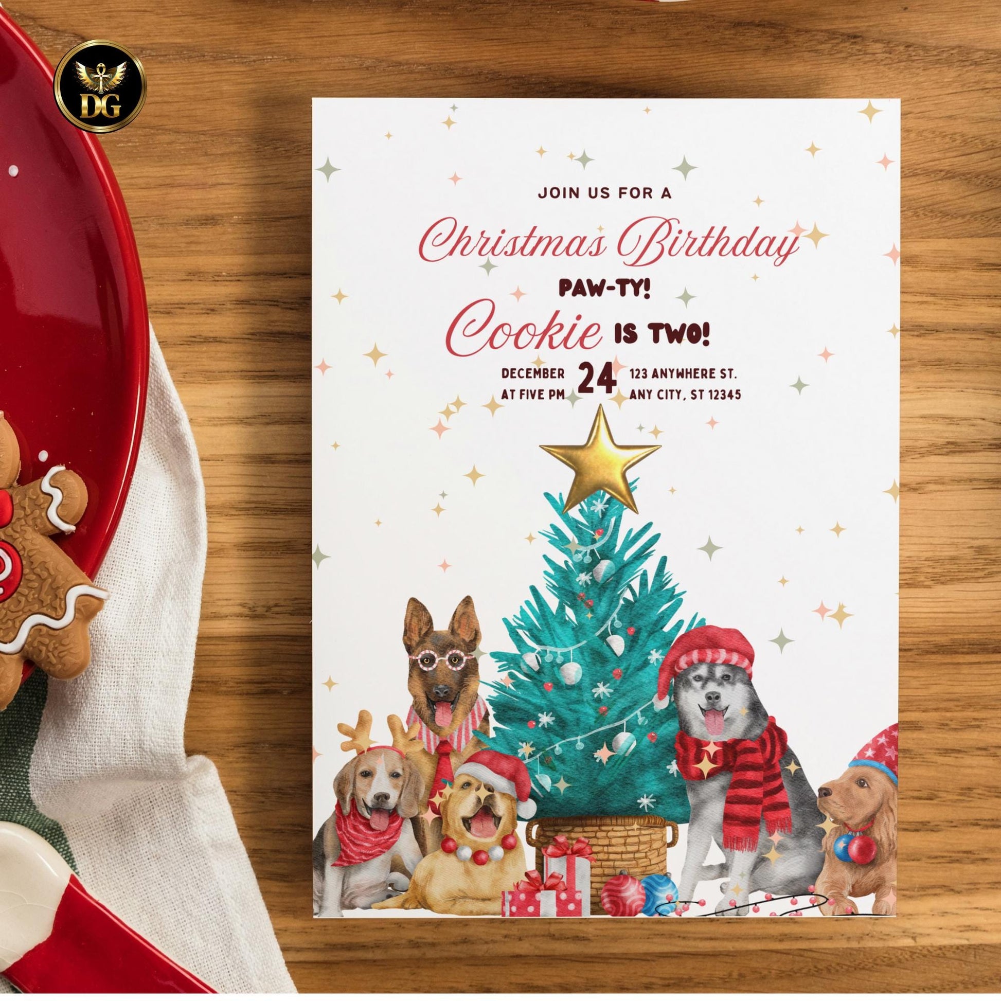 Christmas Dog Birthday Invitation | Pet Birthday Party Template | Editable Puppy Invite | Holiday Dog Party Card Printable